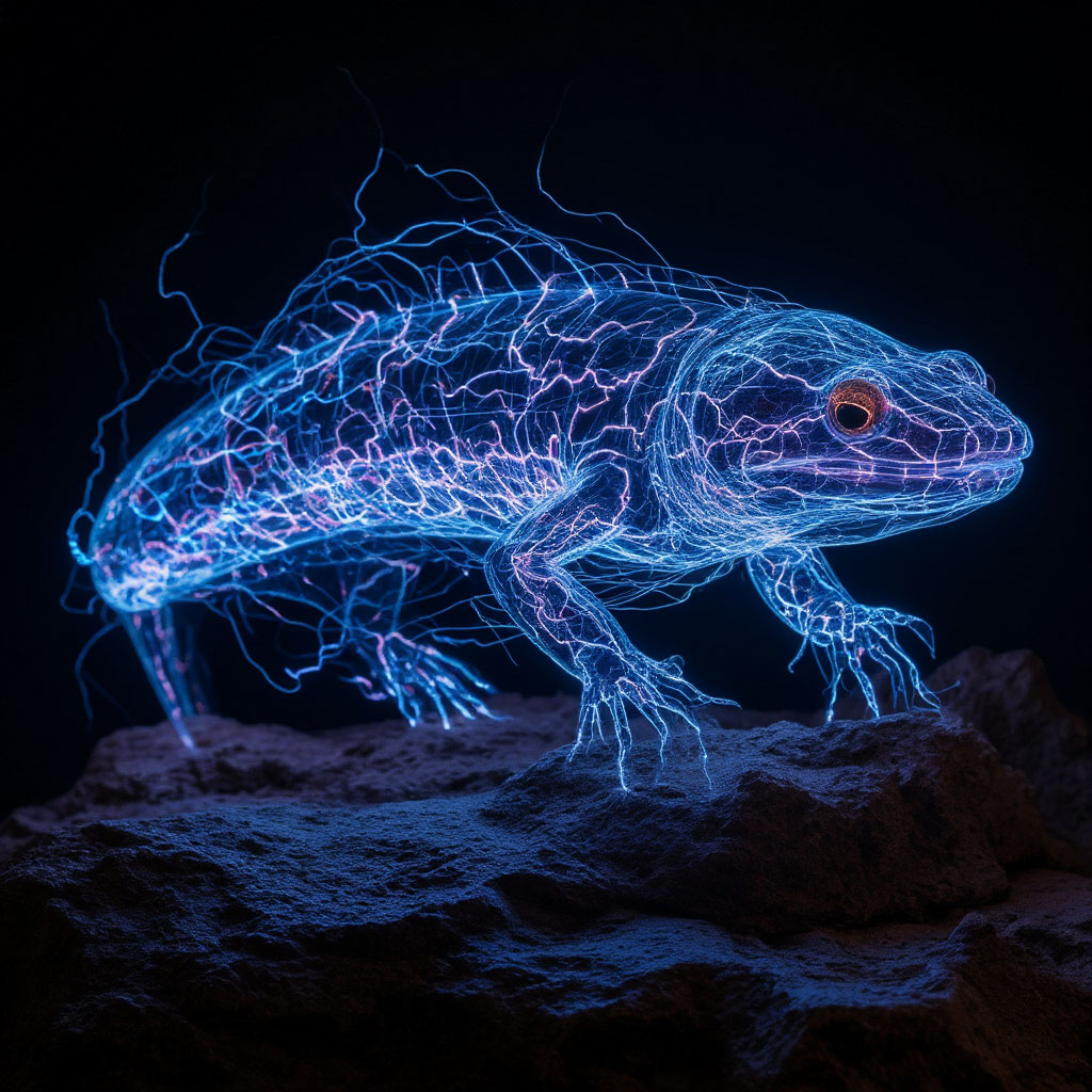 Команда космонавтов начала использовать горнодобывающие лазеры в начале месторождения. Но импульсы установок в пещере без света заставила пробудиться от покоя местной неудачной попытки предшественников в эксперименте перехода импульсов нервной системы в блуждающее состояние. Из металла поползло много электрических протоптеров. Агрессивных, кстати.